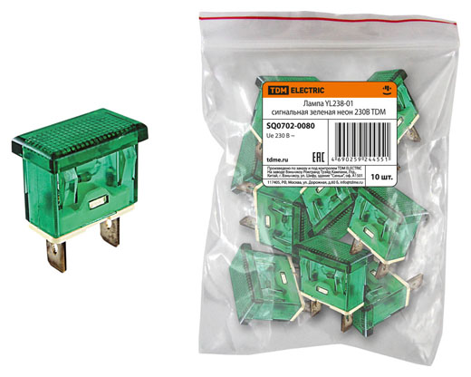 Лампа YL238-01 сигнальная зеленая неон 230В TDM в Краснодаре
