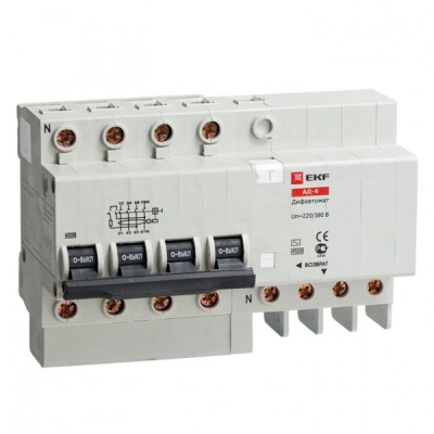 Дифференциальный автомат АД-4 6А/30мА (характеристика C, тип AC) 4,5кА EKF в Краснодаре