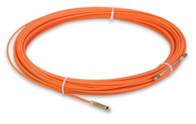 Длина троса составляет 15 метров, что позволяет не только протягивать оптический кабель между этажами, но и работать в канализации, где расстояния между колодцами укладываются в данную величину. Толщина троса небольшая, всего 3,5 мм., потому он без труда проникает в самые узкие щели. Материал не пропускает электричества, потому можно не бояться ударов током при работе.