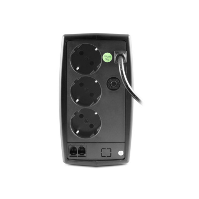 ИБП 3Cott-650-HML мощностью 650ВА/390Вт оснащен тремя разъемами CEE7/4 (евростандарт) с батарейной поддержкой и разъемом RJ-11 для защиты телефонной линии от импульсных помех.
