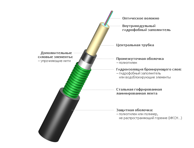 ИКСЛН-Т - негорючий оптический кабель для прокладки в канализацию на основе центральной трубки.