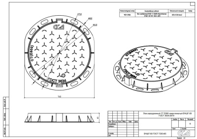 Люк изготовлен из высокопрочного чугуна марки не ниже СЧ-50 согласно ГОСТ 3634-99 «Люки смотровых колодцев и дождеприемники ливнесточных колодцев» (европейский стандарт EN 124-1994). Дополнительная информация о люках и их маркировке приведена в описании группы.