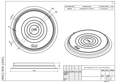 Люк изготавливается в соответствии с ГОСТ 3634 «ЛЮКИ СМОТРОВЫХ КОЛОДЦЕВ И ДОЖДЕПРИЕМНИКИ ЛИВНЕСТОЧНЫХ КОЛОДЦЕВ» по нормативным нагрузкам и конструктиву, также соответствует ГОСТ 8591-76 «ЛЮКИ ДЛЯ КАБЕЛЬНЫХ КОЛОДЦЕВ ТЕЛЕФОННОЙ КАНАЛИЗАЦИИ» по требованию возможности установки нижней (второй) крышки и наличиЮ газоанализаторного отверстия не менее 20 мм.