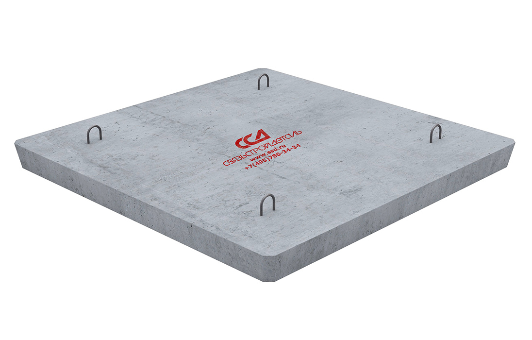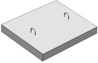 Плита имеет квадратную форму. На верхней поверхности плиты расположены четыре строповочных петли. После установки пластикового колодца на плиту, производят их крепление с помощью анкерных болтов.