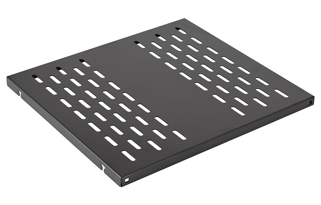 Для охлаждения оборудования полки имеют перфорацию.