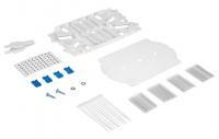 Кронштейн крепится к корпусу муфты с задней стороны. В кронштейне сделаны отверстия для крепления к столбовым опорам с помощью металлической монтажной ленты.
