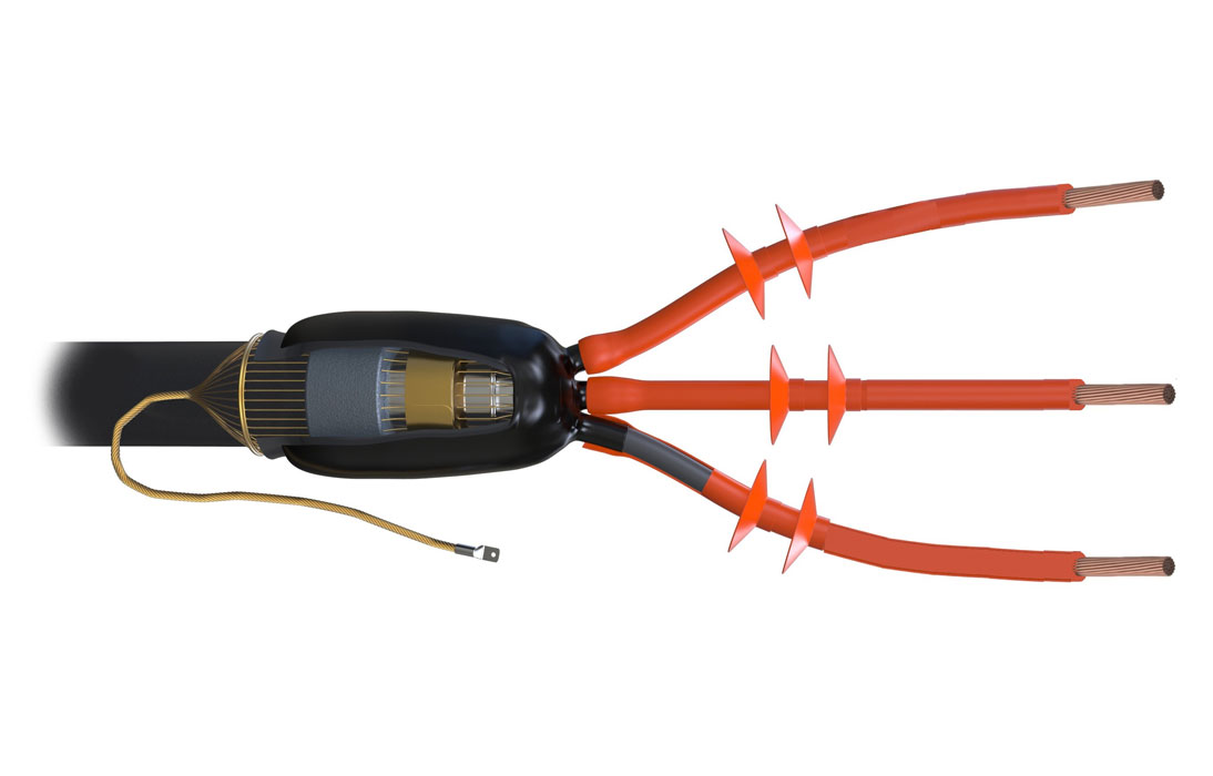 Муфта предназначена для оконцевания трехжильного кабеля с броней с изоляцией из сшитого полиэтилена и экраном из медных проволок на напряжение до 10кВ для внутренней установки.