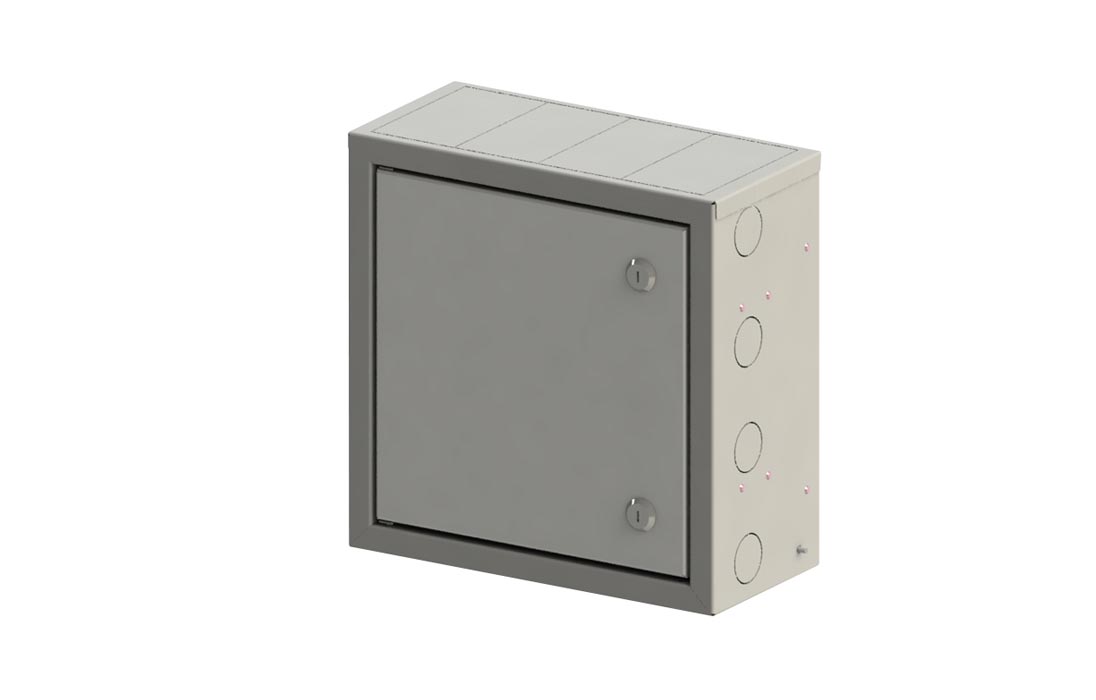 Корпус изготовлен из стали с порошковым покрытием и оснащен замками для предотвращения несанкционированного доступа. Отличается повышенной защищённостью от взлома. Съёмная откидная монтажная панель обеспечивает удобство монтажа и эксплуатации.