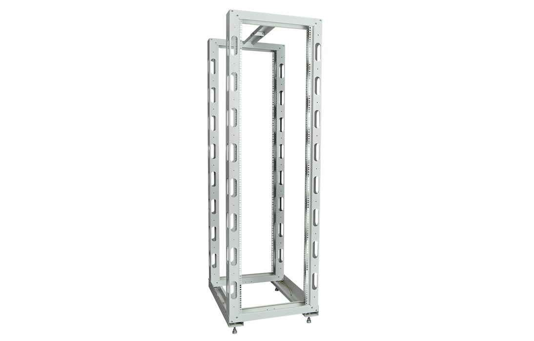 Телекоммуникационная стойка 19" предназначена для размещения различного сетевого, коммутационного, кроссового, телекоммуникационного оборудования, а также периферийных устройств (серверные платформы, сетевые хранилища, коммутаторы и маршрутизаторы, концентраторы, модемы, АТС, патч-панели, источники бесперебойного питания, сетевые фильтры, медиаконверторы и т. д.). Особенности конструкции двухрамных стоек позволяют устанавливать, помимо стандартного 19-дюймового оборудования, тяжелое не форматное оборудование, используя для этого усиленные полки с четырехточечным креплением. Верхние перекладины стоек фиксируются друг с другом специальной крышкой. Каркас стойки скреплен винтами, имеющими проводящий контакт.