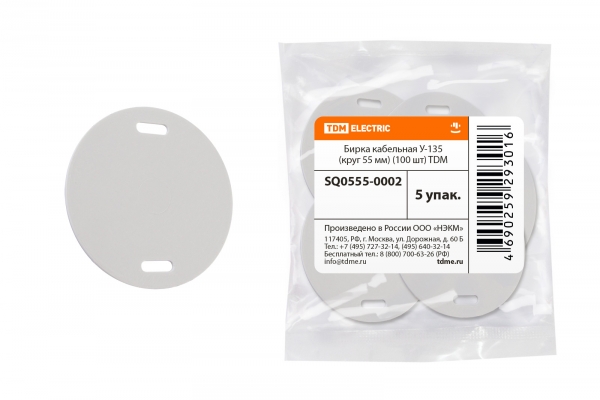 Бирка кабельная У-135 (круг 55 мм) (100 шт) TDM в Краснодаре