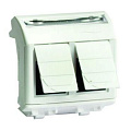 Коробка в сборе с 2 розетками RJ-45, кат. 5е. Назначение: организация рабочего места. Характеристики: материал коробки – АБС-пластик; отверстия 50х20 мм с 3-х сторон для ввода мини-каналов закрыты заглушками; для монтажа к стене ? отверстия на дне коробки для саморезов диаметром до 4 мм. Комплектация: розетка RJ-45, категория 5e, с 2 разъемами, 2 мод. "Brava"; каркас на 2 мод. "Brava"; рамка на 2 мод. "Brava"; основание коробки ? 1 шт.; саморезы для установки в основание коробки каркасов с ЭУИ ? 2 шт.; заглушка 50х20 мм ? 3 шт.; адаптер для ввода мини-канала 22х10 или 30х10 мм ? 1 шт.; адаптер для ввода мини-канала 25х17 или 15х17 мм ? 1 шт.; адаптер для ввода мини-канала 40х17 или 40/2х17 мм ? 1 шт. Цвет белый