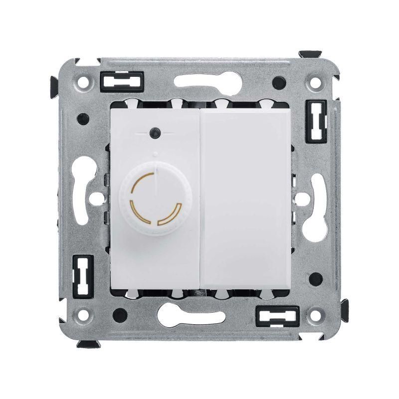 Диммер кнопочный в стену для LED ламп. Предназначен для монтажа в подрозеточные коробки глубиной не менее 45 мм (код 59301). Используется для управления освещением помещения. Регулирование 3–120 Вт для LED ламп; регулирование 3–220 Вт для ламп накаливания и галогенных ламп; диммирование по переднему и заднему фронту; выбор режима включения освещения (плавный пуск). Диаметр отверстий для ввода кабелей – 3 мм; винтовые зажимы. Фиксация производится в подрозеточную коробку при помощи саморезов; шаблон для зачистки кабеля – 11 мм. 2 модуля. Цвет: "Черный матовый".