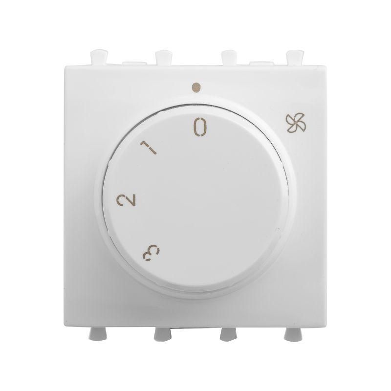 Механизм управления вентиляторами от ДКС встраивается в настенный кабель-канал и используется для изменения скорости вращения лопастей вентилятора. Конструкция предусматривает переключение по трем возможным скоростям и режим покоя. Изменение скорости производится поворотом колесика-регулятора. Номинальное напряжение ЭУИ – 230 В. Изделие имеет цвет "Белое облако", оттенок с универсальной сочетаемостью, который подойдет к любому цветовому решению и стилю оформления интерьера.