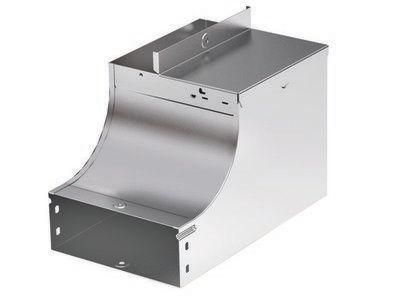 Лотки и аксессуары системы "S5 Combitech" применяются для построения кабельных трасс, в том числе сложного конструктива – с горизонтальными и вертикальными разворотами и изгибами. Вертикальный внутренний угол-переходник CSSS используется для поворота кабельной трассы в вертикальной плоскости с разворотом открытой ее части на 90о вокруг своей оси. При этом плавный изгиб предотвращает повреждение кабеля при прокладке. Ровная боковая часть аксессуара позволяет размещать трассу вдоль стены. Угол применяется с лотками шириной 100 мм и высотой 100 мм. Внутренний радиус аксессуара - 100 мм. Применение комплектных аксессуаров облегчает расчет числа необходимых элементов для монтажа – в комплект уже входят соединительные пластины и детали крепежа. Он выполнен в специальном исполнении "Горячий цинк", которое отличает повышенная устойчивость к коррозии. Горячеоцинкованное изделие защищено от образования ржавчины на срок 30-50 лет (в зависимости от условий, в которых эксплуатируется изделие).