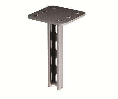 Подвес вертикальный одиночный BSP-21 41х21 мм применяется для монтажа консолей: ВВН-60, ВВН-70, BBD-21, BBP-21/41; одностороннего монтажа кабельных трасс; потолочного или напольного крепления. Подвес имеет С-образный профиль, толщина профиля 2,5 мм, толщина пластины 6 мм. В основании 6 отверстий под метизы М10. Длина подвеса - 1200 мм. Противокоррозионное цинкнаполненное покрытие повышает срок службы изделия в условиях агрессивных сред и высокой влажности.