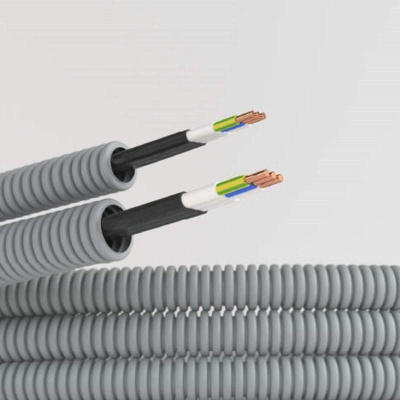 Электротехнические гибкие гофрированные трубы из ПВХ используются для прокладки кабельных коммуникаций в стенных штробах, в пустотах фальш-потолков и фальш-стен, в стяжке полов или под фальш-полами. Трубы могут применяться при монолитном строительстве, прокладываться на производственных предприятиях, в коммерческой недвижимости и индивидуальном строительстве. Электротруба - это гофрированная труба с уже протянутым внутри кабелем ВВГ-Пнг(А)-LS3х2,5кв.мм Конкорд. Такое решение значительно сокращает время монтажа и предупреждает возможное повреждение кабеля при протяжке. Материал - ПВХ. Диаметр трубы - 20 мм. Цвет - серый.