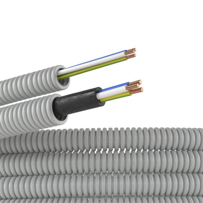 Труба гофрированная ПВХ гибкая d16мм с проводом ПВ-1(ПуВ) 3х1.5 РЭК ГОСТ+ сер. (уп.50м) DKC 9P91650 в Краснодаре