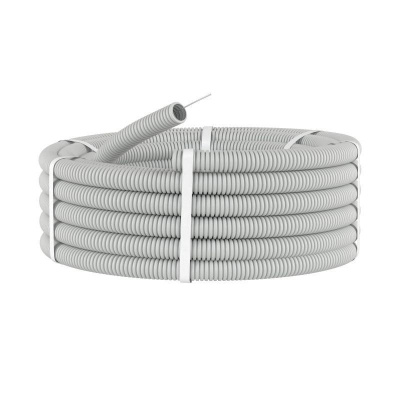 Труба ПВХ гофро тяж. c протяж. d20мм (уп.100м) ДКС 91520 используется для прокладки силовых и слаботочных линий, электрических, телефонных, компьютерных, телевизионных сетей. Изготовлена из ПВХ, серого цвета. Отличается необходимой гибкостью, прочностью и жесткостью, защищает проводку от механических повреждений, пыли, влаги, предохраняет от последствий короткого замыкания в сети. Устойчива к износу и старению. Требует защиты от воздействия ультрафиолетовых лучей.