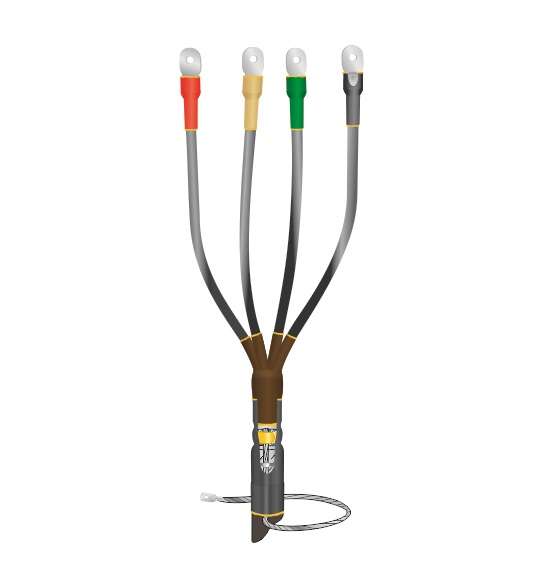 МУФТА КОНЦЕВАЯ ТЕРМОУСАЖИВАЕМАЯ МАРКИ 1КВТпН-4х(35-50) С НАКОНЕЧНИКАМИ БОЛТОВЫМИ ВНУТРЕННЕЙ УСТАНОВКИ предназначена для оконцевания 4-х жильных силовых кабелей сечением 35, 50 кв.мм с бумажной или с пластмассовой изоляцией, с броней или без брони, на напряжение до 1 кВ включительно. Универсальна в применении. Устанавливается внутри помещений всех категорий влажности. Соответствует требованиям ГОСТ 13781.0-86 и ТУ Нева-Транс 3599-012-31930690-2016. Прошла необходимый комплекс независимых испытаний, на основании которых выдан сертификат соответствия Госстандарта России. Монтируется на разделке кабеля методом термоусаживания основных деталей из модифицированного полимера, входящих в комплект муфты, с помощью горелки или высокотемпературного фена. Предусматривает крепление провода заземления к металлической оболочке кабеля, имеющего бумажную изоляцию, с помощью пружины постоянного давления и терки, а к бронелентам методом пайки. Сочетает в себе высокую эксплуатационную надежность и экологическую безопасность.
