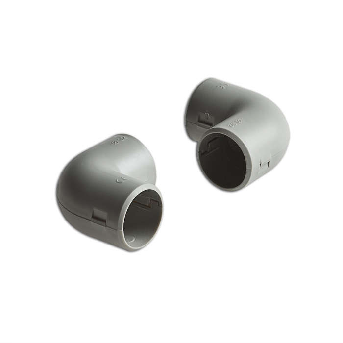 Поворот на 90град. d20 соед. Рувинил У01220 представляет собой аксессуар для гладкого жесткого трубопровода, наружным диаметром 20 мм. Без резьбы. Изготовлена из прочного пластика, светло-серого цвета. Не содержит галогенов. Применяется при соединении кабельных трубопроводов совпадающего диаметра под прямым углом (90°).