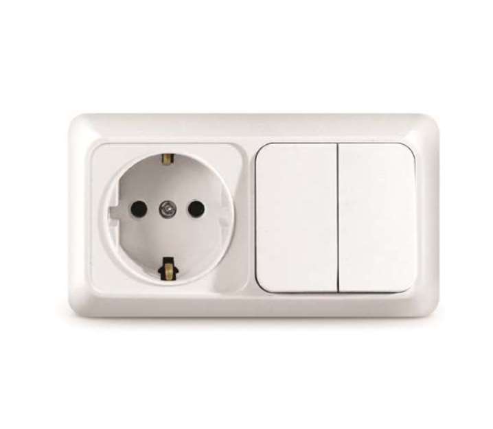 Блок ОП Олимп 2-кл. вык.+ роз. с заземл. горизонт. бел. UNIVersal О0033 представлен потребителю в серии "Олимп". Серия "Олимп" для открытой установки сочетает в себе функциональность с практичностью. Изделия данной серии удачно вписываются в интерьер любого помещения и производят приятное впечатление. Блок объединяет двухклавишный выключатель и розетку. Корпус представляет собой форму из пластика, белого цвета. Контактная группа изделий изготовлена из латуни. Монтируется горизонтально, на глубину 48 мм, на поверхность стены. Рекомендованы для жилых помещений и административных зданий. Срок службы составляет 5 000 циклов включения/отключения.