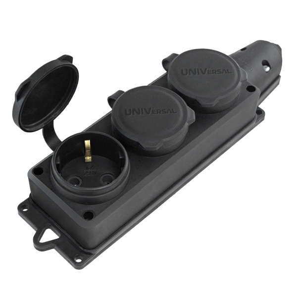 Розетка каучуковая, IP44 Пыле- и влаго-защита, максимальная мощность - 16 A/3500 В (кабель до 3x1.5мм2),
