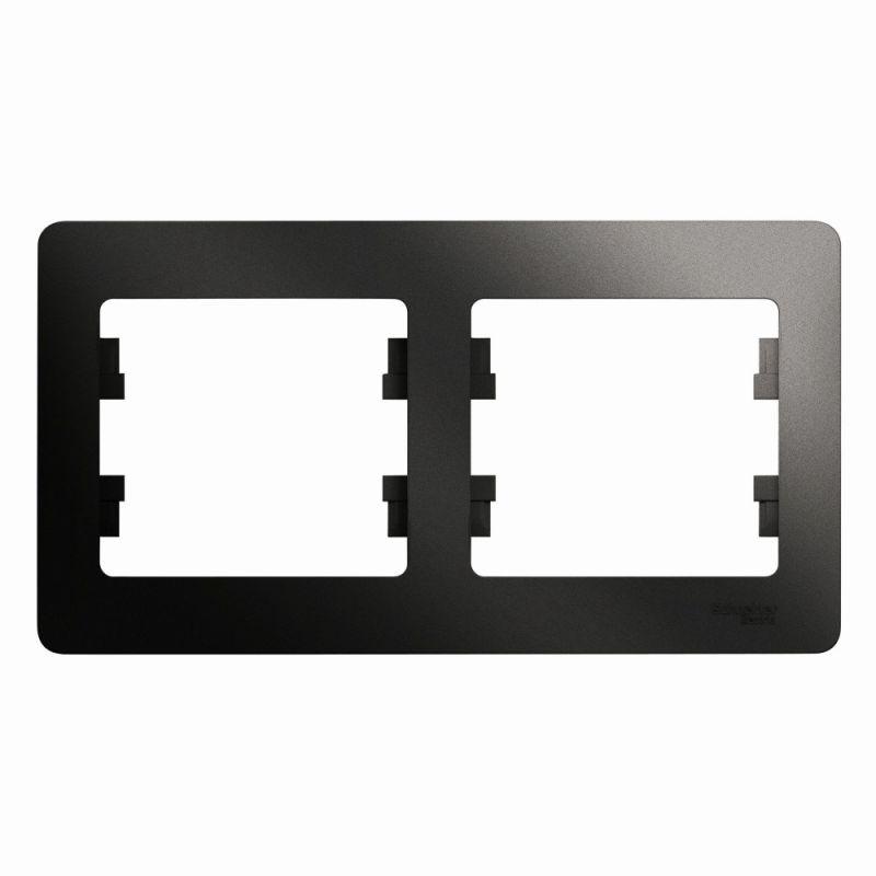 Рамка Glossa (цвет антрацит) двухместная. - Устанавливается в горизонтальном положении. - Выполнена из материала PС+ASA, стойкого к УФ-излучению и появлению царапин. - Позволяет гармонично вписать электроустановочное изделие в интерьер помещения.