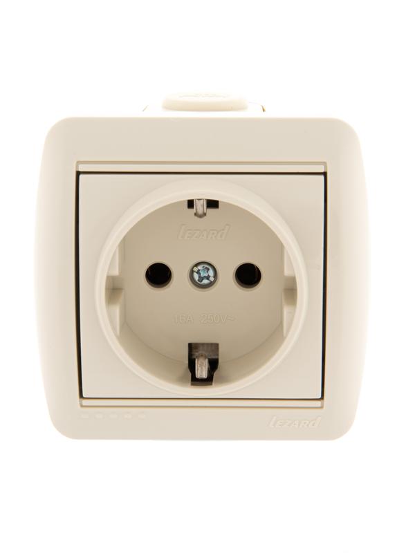 Розетка 1-м ОП Nata 16А IP20 с заземл. с защ. крышкой керамика крем. LEZARD 710-0300-123 в Краснодаре