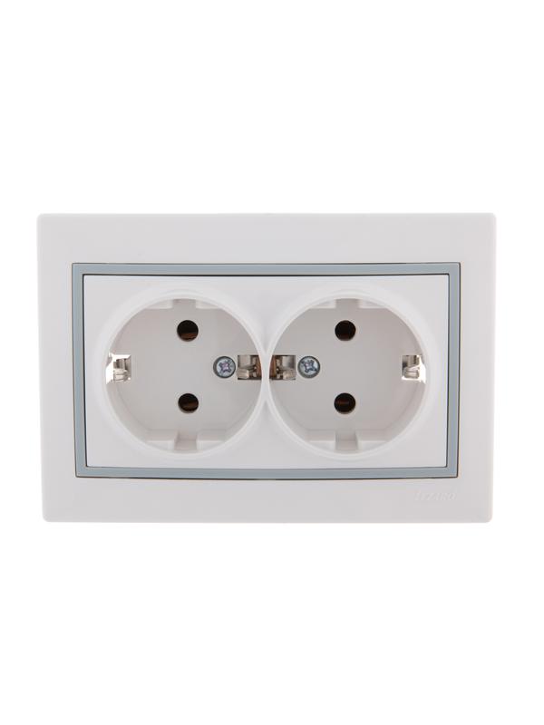 Розетка 2-м СП Mira 16А IP20 с заземл. с сер. вставкой керамика бел. LEZARD 701-0215-127 в Краснодаре