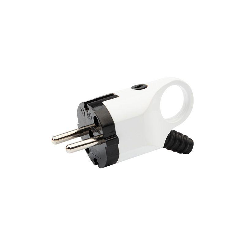 Вилка угловая 16А с заземл. евро стандарт с ушком (кольцом) бел./черн. Rexant 11-8952 в Краснодаре