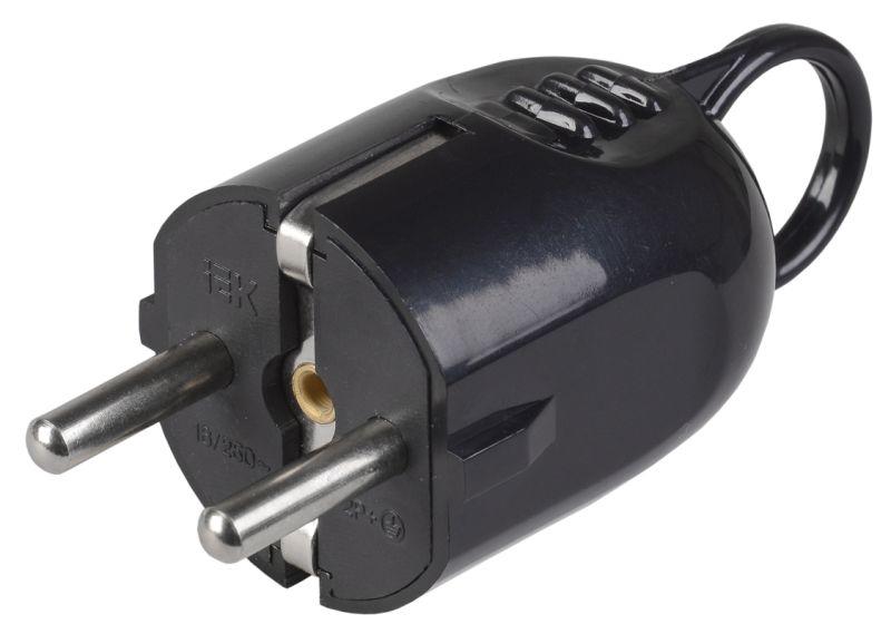 Вилка угловая ВПу12-02-Ст разборная с заземл. с кольцом 16А черн. IEK EVP12-16-01-K02 в Краснодаре