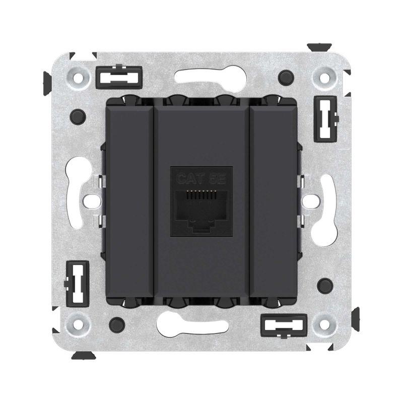 Компьютерная розетка без шторки используется для подключения компьютерной техники и соединения с патч-панелью. Компьютерная розетка предназначена для скрытого монтажа в стену, поставляется в комплекте с суппортом. Розетка RJ-45 категории 5e – это наиболее популярная на сегодняшний день модель. Она позволяет организовать сеть с частотой 125 МГц и скоростью до 1000 Мбит/с. Материал – металл, термопласт. Пластиковые детали устройства имеют оттенок "Черный матовый".